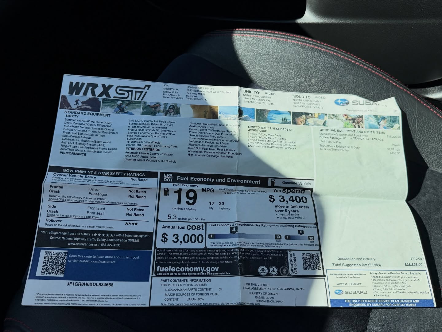 | 1. | Exhaust | SPT Performance Catback Exhaust System, STI 5 door AT DELIVERY INSTALL | ||